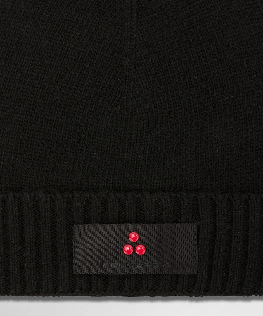 Peuterey muts met een klassieke pasvorm en omgeslagen rand. Voorzien van een subtiel merklabel met drie rode stippen op de voorkant. Effen zwart voor veelzijdige combinaties. Ideaal voor dagelijks gebruik in koude omstandigheden.