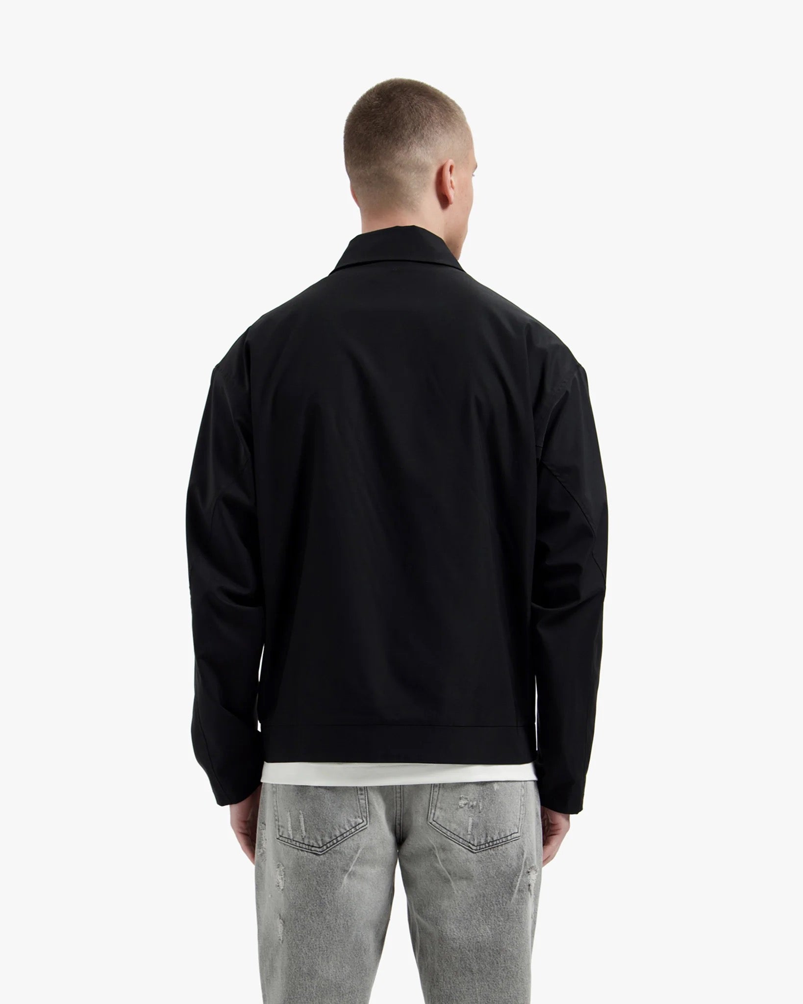 De jas heeft een ruimvallende, boxy pasvorm (relaxed fit) met een kortere lengte voor een hedendaagse uitstraling. De voorzijde is voorzien van een functionele ritssluiting. Aan de zijkanten zijn twee subtiele steekzakken aangebracht en de onderzijde van de zoom is elastisch afgewerkt voor een betere afsluiting.