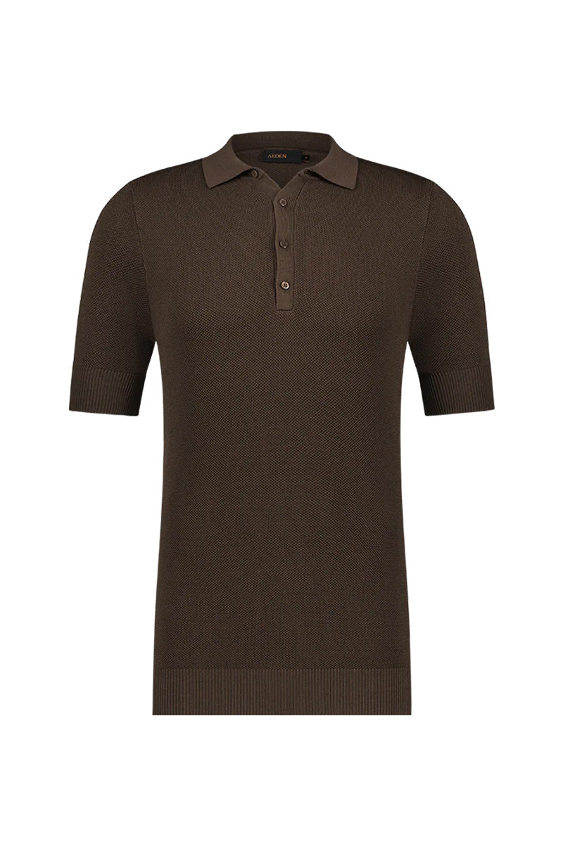 Heren regular-fit polo Bruce, in kleur bruin, van het merk Aeden. Gemaakt van 100% biologisch katoen met niet-toxische kleurstoffen en door de hoogwaardige steekafwerking een stijlvolle touch. Afgewerkt met een getextureerde ontwerp, een klassieke kraag en geribbelde manchetten bij taille en mouw. Heeft een GOTS-certificaat, dit keurmerk is ontwikkeld om bio-katoen en andere biologisch geteelde vezels verder te produceren tot een duurzaam kledingstuk of textiel.