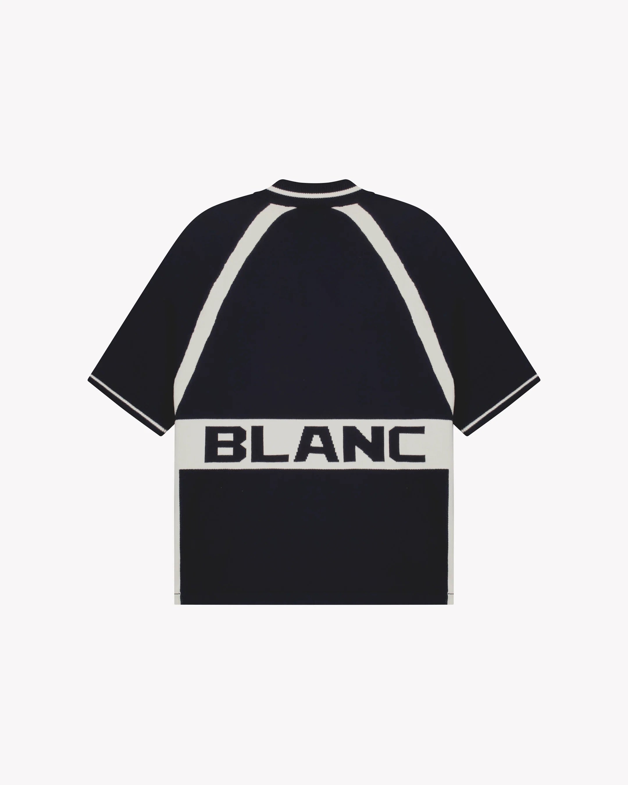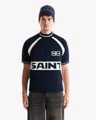 De Saint Blanc TRUI CYCLING KNIT POLO D-BLAUW is een opvallende herentrui van het merk Saint Blanc. Dit gebreide poloshirt combineert een klassiek breisel met sportieve, retro kenmerken. Het donkerblauwe item valt op door de contrasterende witte details. De voorzijde toont het 'SB'-monogram en ‘SAINT’ in de horizontale band; op de achterzijde staat ‘BLANC’.