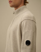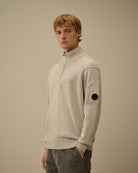 Dit model heeft een Regular Fit pasvorm. De afwerking omvat geribbelde boorden en een geribbelde zoom voor een nette afsluiting. Een kenmerkend detail is de utility pocket die zich op de linkermouw bevindt. Deze zak is voorzien van het iconische, zwarte C.P. Company lens logo, wat een direct herkenbaar merkteken is.