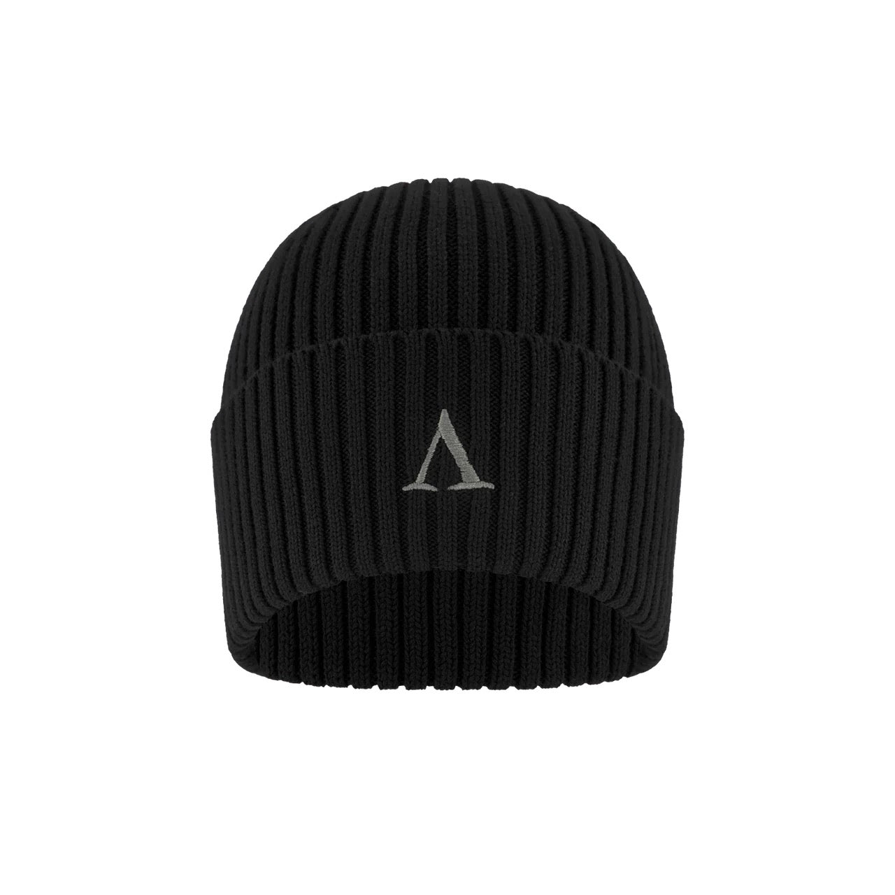 Ribgebreide muts met fijne textuur. Vouwbare rand. Kenmerkend geborduurd A-logo aan de voorkant. Ontworpen voor dagelijks gebruik. Minimalistisch ontwerp.