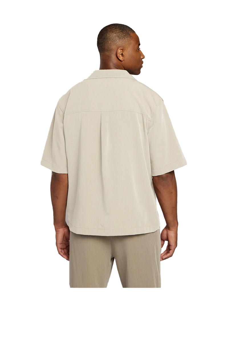Kortemouwen overhemd met klassieke kraag en rechte fit. Voorzien van knoopsluiting aan de voorzijde. Een enkele borstzak voor functionele elegantie. Verkrijgbaar in een subtiele off-white kleur voor veelzijdige combinaties. De minimale details en het tijdloze ontwerp maken dit item geschikt voor diverse gelegenheden.