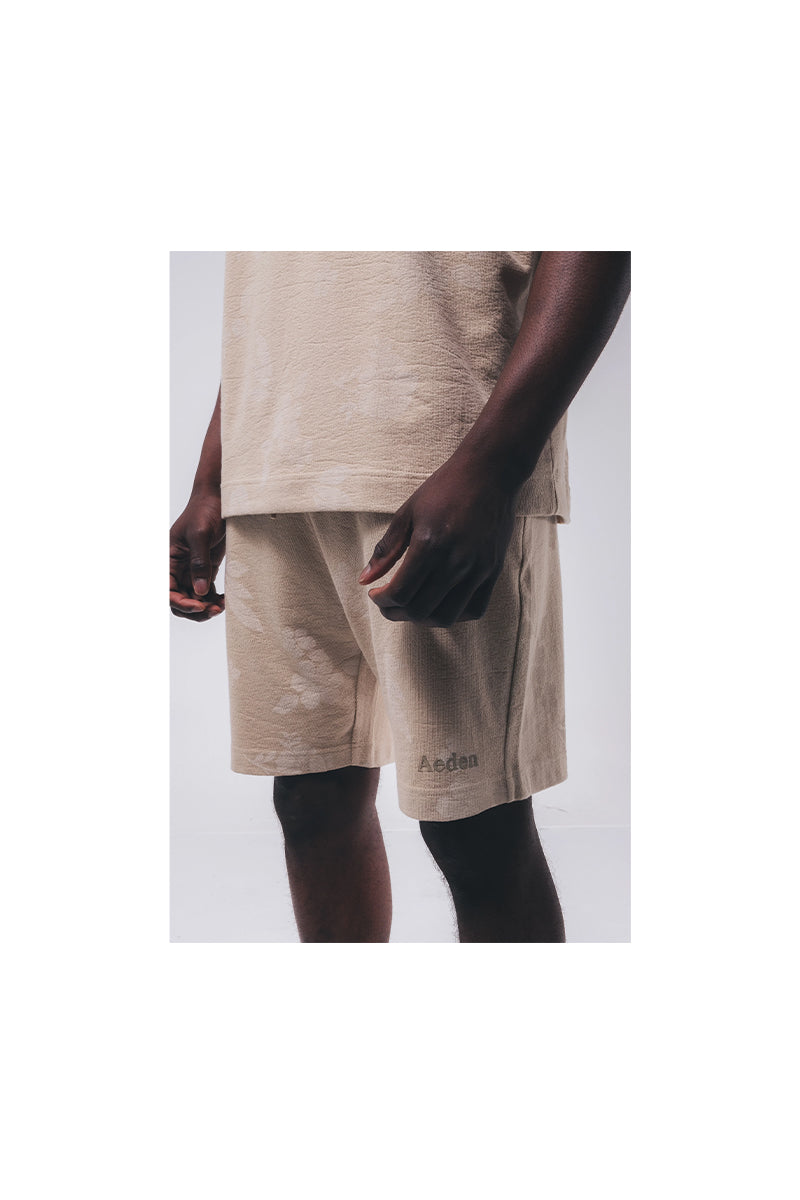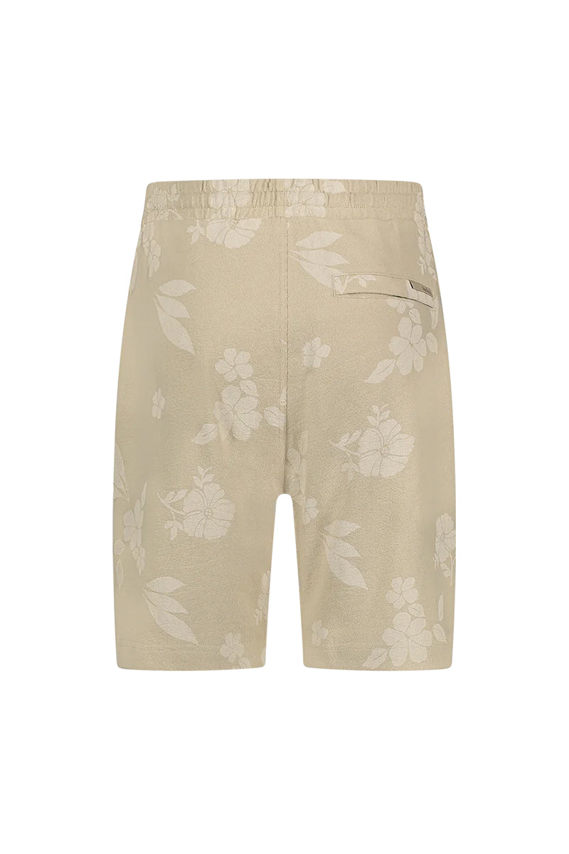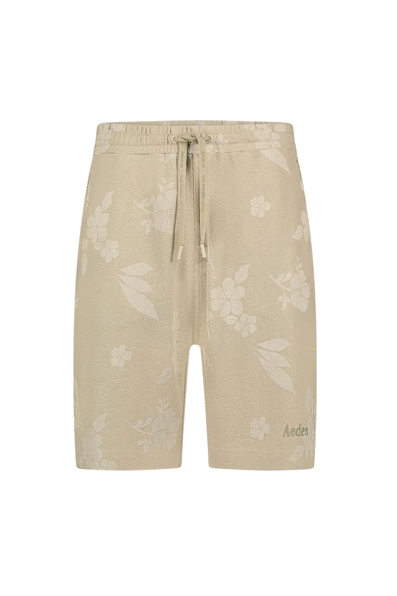 Korte broek met elastische tailleband en verstelbaar trekkoord voor een persoonlijke pasvorm. Ontworpen met subtiele bloemenprint voor een eigentijdse uitstraling. Voorzien van steekzakken en een paspelzak aan de achterkant. Discreet Aeden-logo linksonder op de broekspijp.