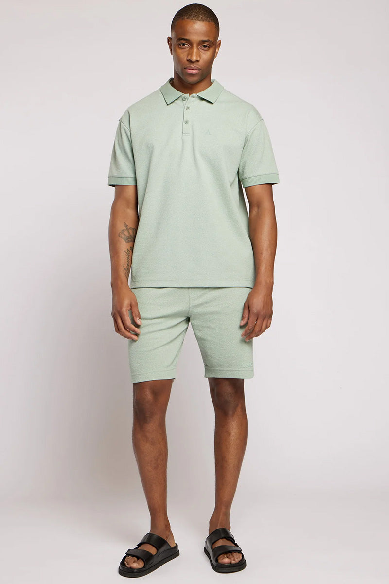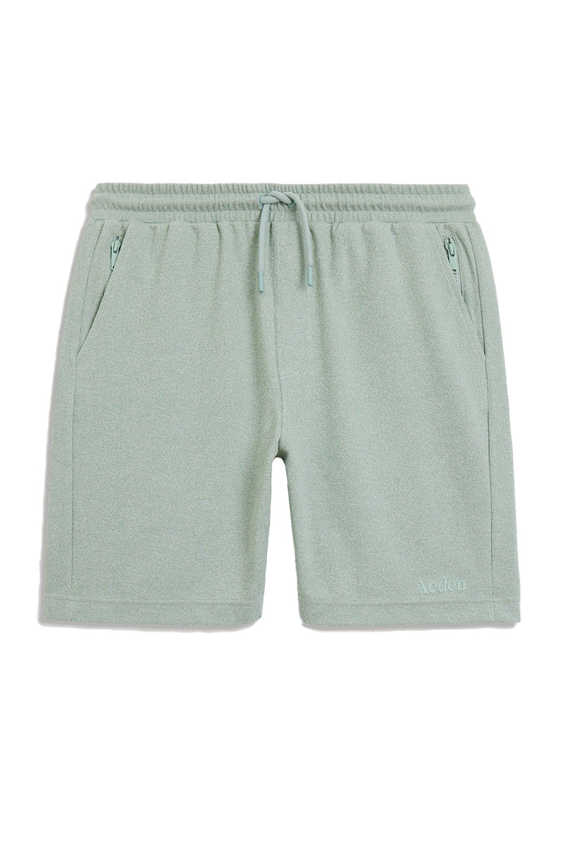 Lichtgroene short met casual fit. Voorzien van een elastische tailleband met verstelbaar trekkoord. Twee praktische zakken aan de voorzijde met rits. Aeden-logo subtiel verwerkt aan de linkerkant. Shorts vallen net boven de knie en zijn ideaal voor alledaags gebruik.