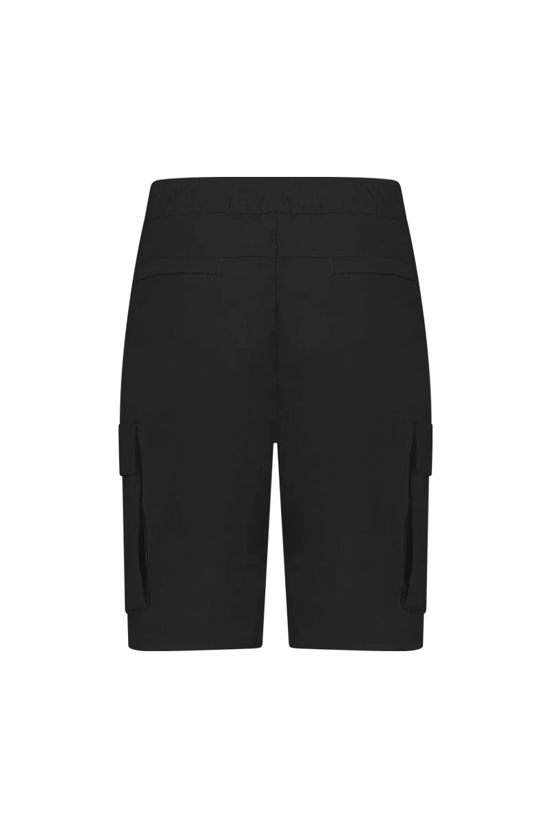 Korte broek van AEDEN in zwart, geschikt voor diverse casual settings. Gemaakt met aandacht voor functionaliteit en stijl. De short heeft een elastische tailleband met trekkoordsluiting voor aanpasbaar comfort. Twee cargozakken op de zijkanten bieden extra opbergruimte terwijl discrete achterzakken het strakke design behouden.