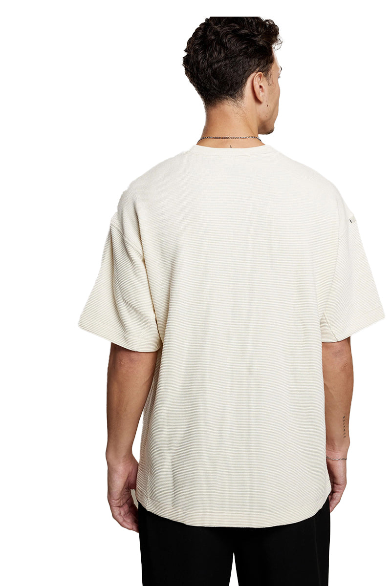 T-shirt van AEDEN met een minimalistisch design. Het shirt komt in een off-white kleur en heeft een oversized pasvorm. Gemaakt zonder opdruk voor een strakke afwerking, met subtiel geborduurd logo aan de voorzijde. Het model is voorzien van een ronde halslijn en korte mouwen voor een klassieke look.
