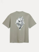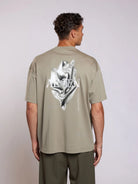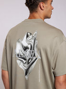 Ruimvallend T-shirt met een eigentijds design. Het T-shirt komt in een zachte groene tint en heeft een opvallende grafische opdruk op de achterkant. Gemaakt zonder zichtbare naden, met ronde hals en korte mouwen voor een casual uitstraling. Het merklogo Aeden is subtiel geïntegreerd in het ontwerp.
