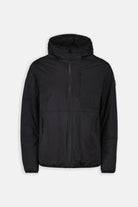Deze zwarte jas van TIP de BRUIN biedt een moderne uitstraling met functionele details. Het design heeft een strak silhouet en is voorzien van een capuchon. De jas is uitgerust met meerdere zakken, waaronder een ritszak aan de voorkant voor veilige opbergruimte. De ritssluiting aan de voorkant zorgt voor gemakkelijke toegang en biedt bescherming tegen de elementen. Subtiele merkdetails zijn aanwezig op de mouw, wat een extra dimensie aan de jas toevoegt zonder te opvallend te zijn.