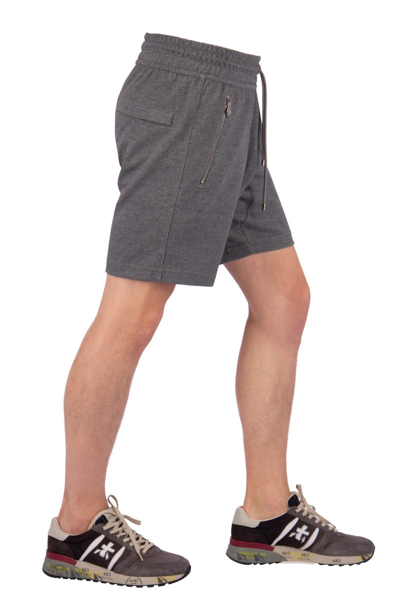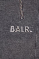 DK heather grey gekleurde shorts van het merk BALR. De short is gemaakt van een extra zware katoen-mix en heeft drie zakken die afgesloten kunnen worden met een rits. In de taille zit een trekkoord en het bekende BALR. logo zit op het rechter broekspijp.