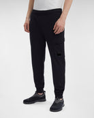 Jogging broek met relaxte pasvorm, voorzien van cargozakken voor extra opbergruimte. Elastische tailleband met trekkoord voor aangepaste pasvorm. Ribgebreide boorden voorkomen opkruipen. Zakken met klep en drukknoopsluiting aan weerszijden. Kenmerkend C.P. COMPANY detail op de linker cargo pocket.