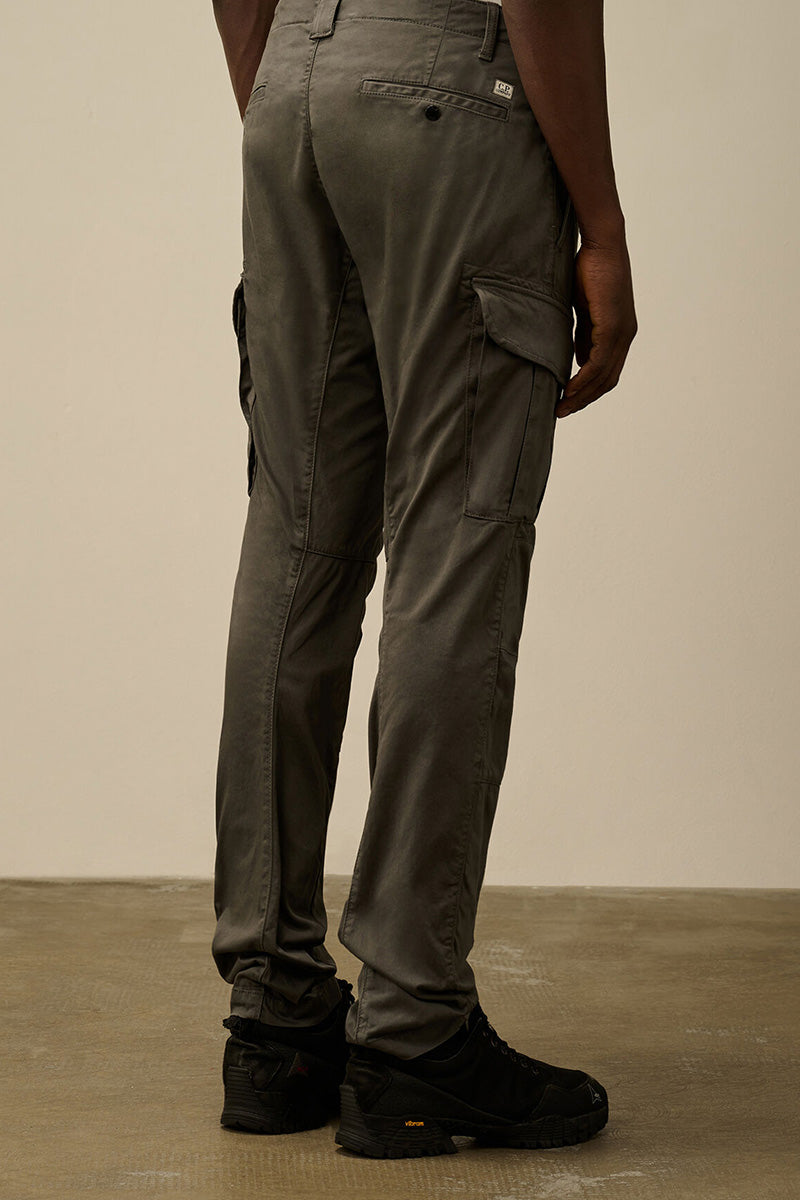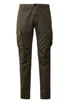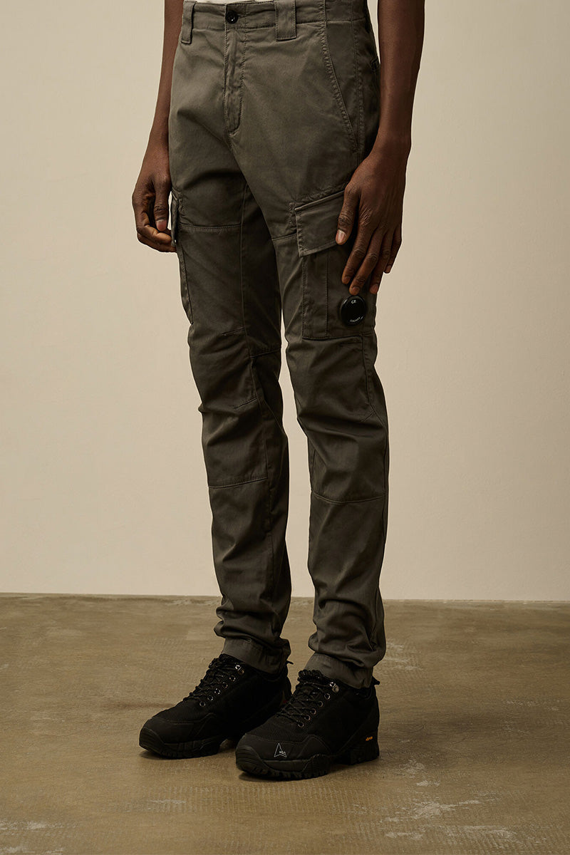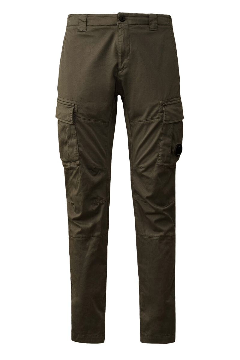 Middenhoge broek met smalle pasvorm. Voorzien van cargozakken op de zijkant en een achterzak met knoopsluiting. Sluiting met rits en knoop. Verlengde riemlussen. Subtiel C.P. COMPANY-logo op de achterzijde.