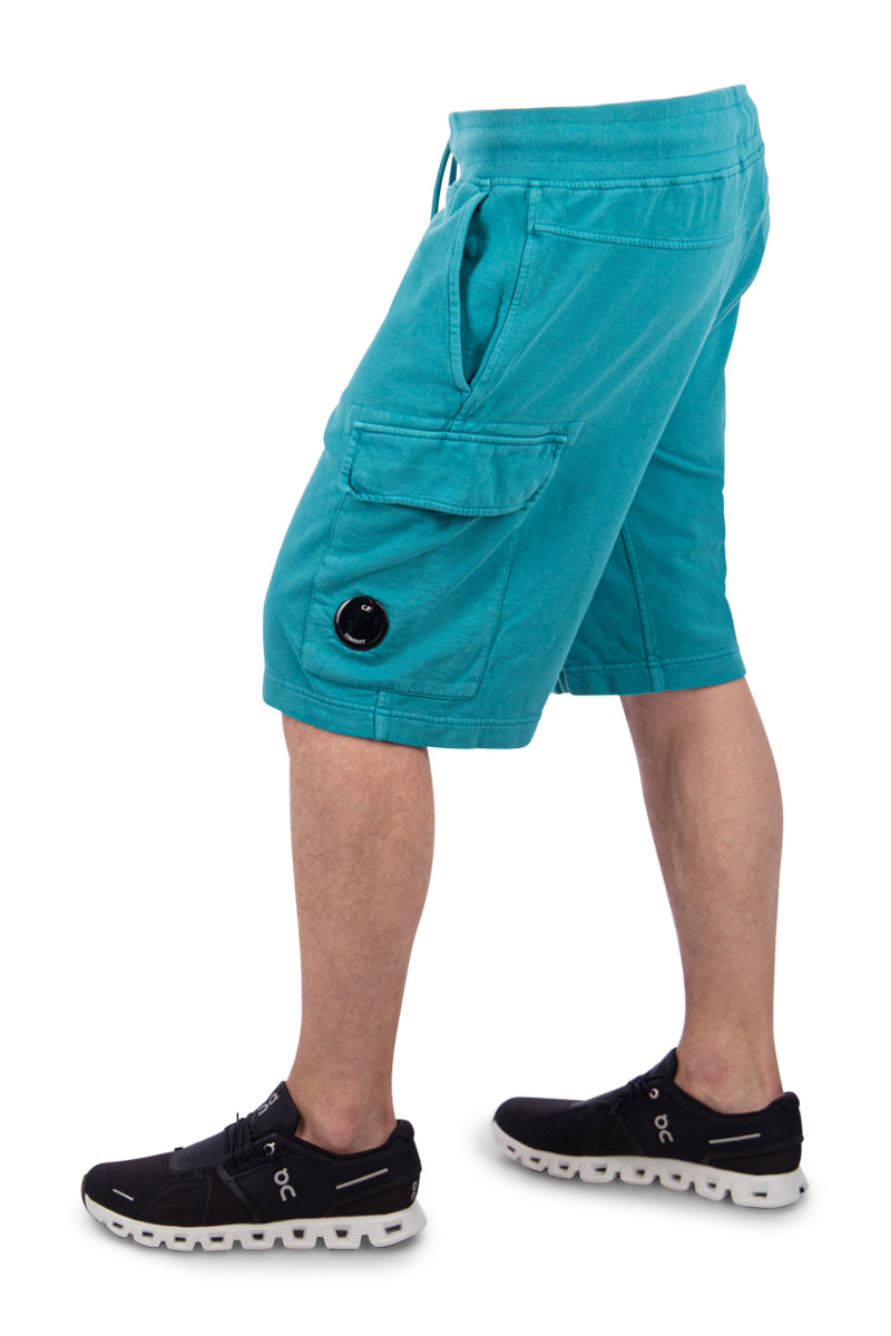 Heren C.P. Company short, 14CMSB139A, in de kleur 825 Aqua. De sportieve korte joggingbroek is voorzien van een cargozak met daarop het iconische C.P. Company logo. Verder beschikt de short over twee reguliere steekzakken en trekkoorden om de heupmaat te verstellen. Tot slot is de short perfect voor alle zomerse gelegenheden.