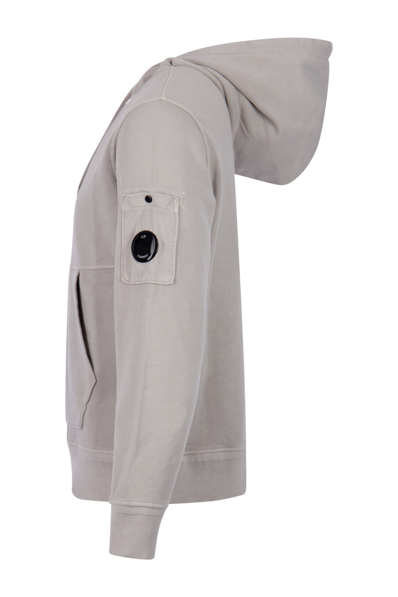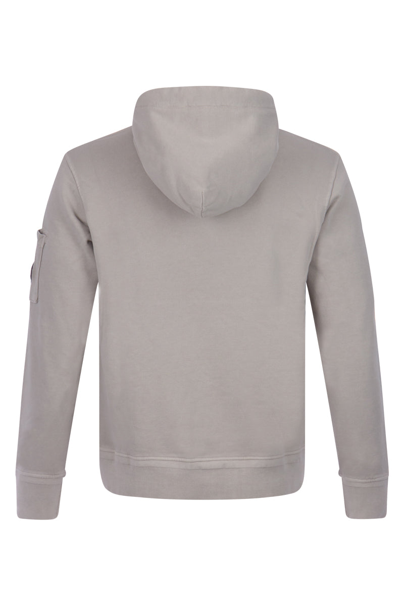 Deze 936 Light Brown gekleurde 14CMSS137A hoodie is van het bekende merk C.P. Company. De hoodie is voorzien vna een capuchon met versteelbaar koord. Op de voorzijde bevindt zich een kangaroezak. De inconische C.P. Comapny lens bevindt zich op de linker mouw gezakelijk met een kleine afsluitbaar zakje.