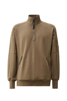 Half-zipped sweatshirt met opstaande kraag en diagonale fleece structuur. Voorzien van twee zijzakken met ritssluiting en een kenmerkende lens op de mouw. Ribboorden bij mouwen en zoom voor een nette afwerking. Verkrijgbaar in een subtiele bruine tint.