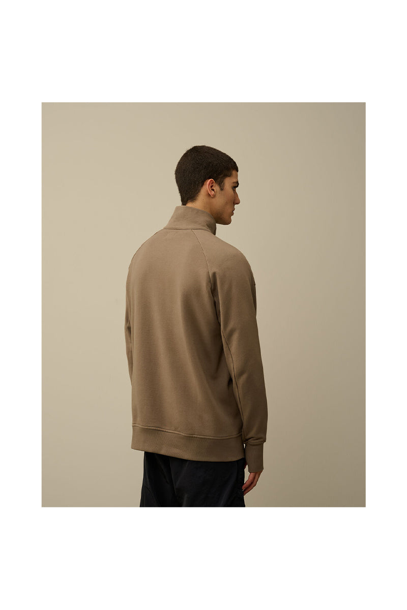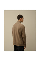 CP COMPANY SWEATER DIAGONAL RAISED FLEECE HALF ZIPPED LENS SWEATSHIRT L-BRUIN