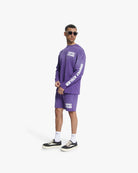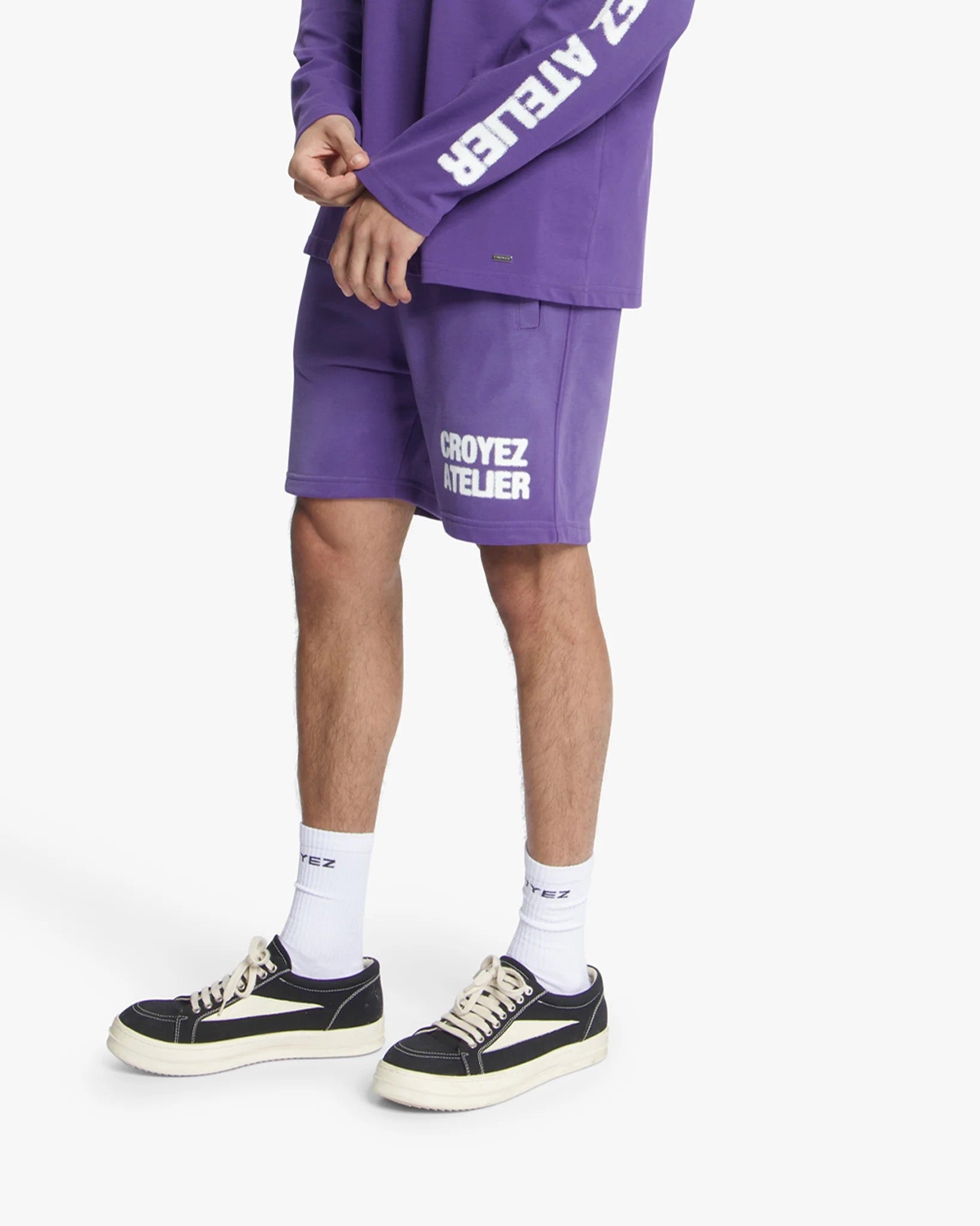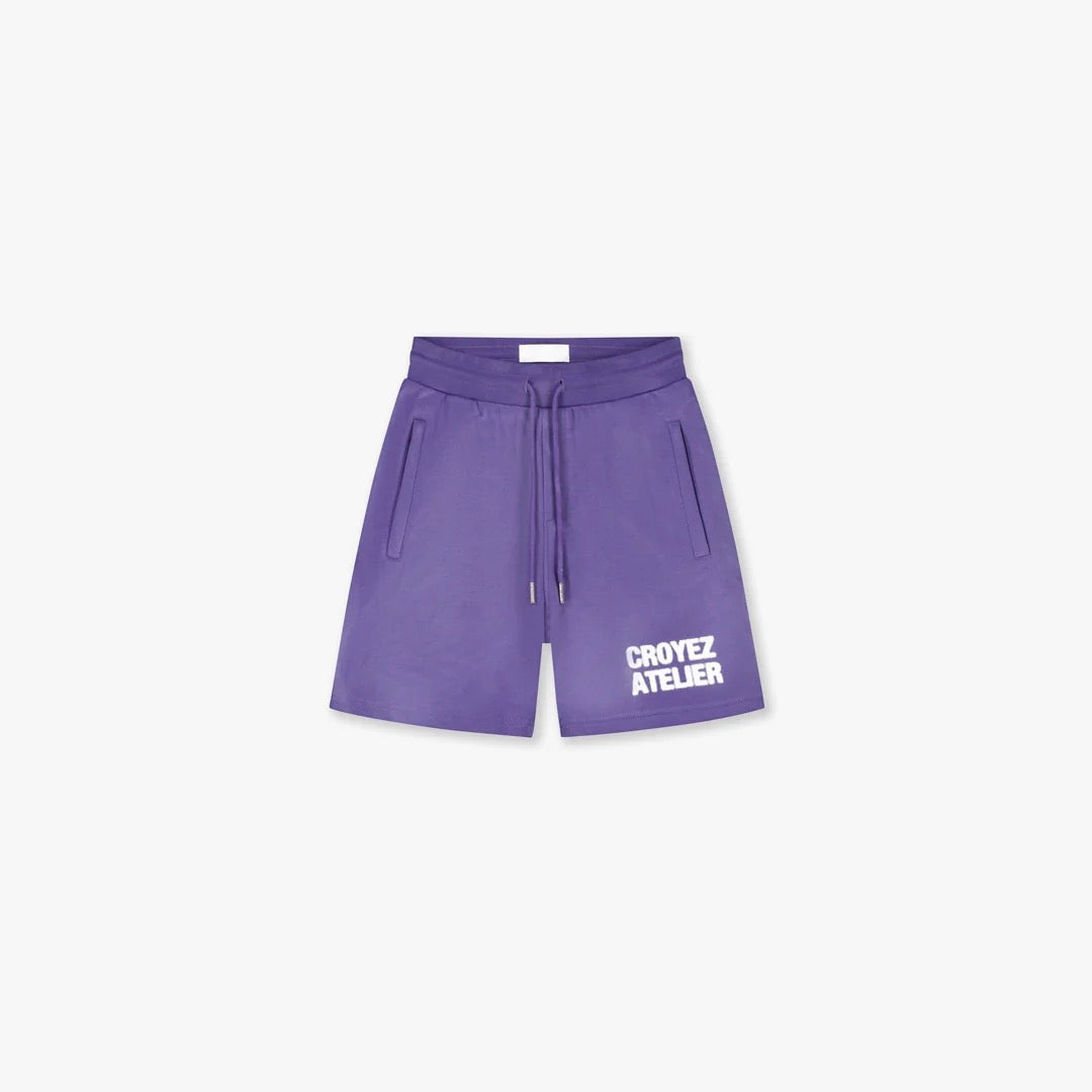 De CROYEZ SHORT SPRAYED ATELIER SHORTS PAARS van Croyez is een opvallende keuze voor heren. De broek heeft een paarse kleur met een 'sprayed' effect voor een eigentijdse look. Het grote witte logo op de linkerpijp geeft het ontwerp een krachtige uitstraling die perfect past bij een moderne vrijetijdsstijl.