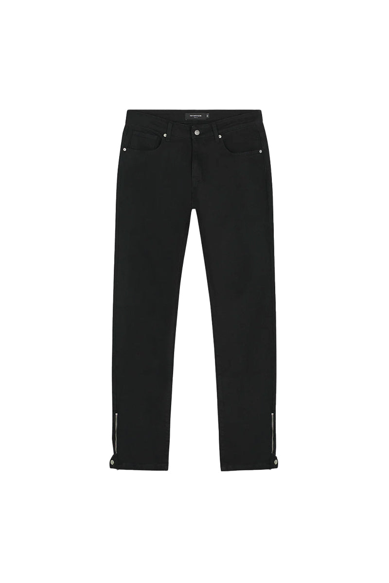 Jeans met een moderne snit en rechte pijpen. Twee voorzakken en twee achterzakken met subtiele metalen details. Voorzien van rits- en knoopsluiting. Zilverkleurige ritsen aan de onderkant van de pijpen voor verstelbare pasvorm. Discreet merklabel op de achterzijde van de tailleband.