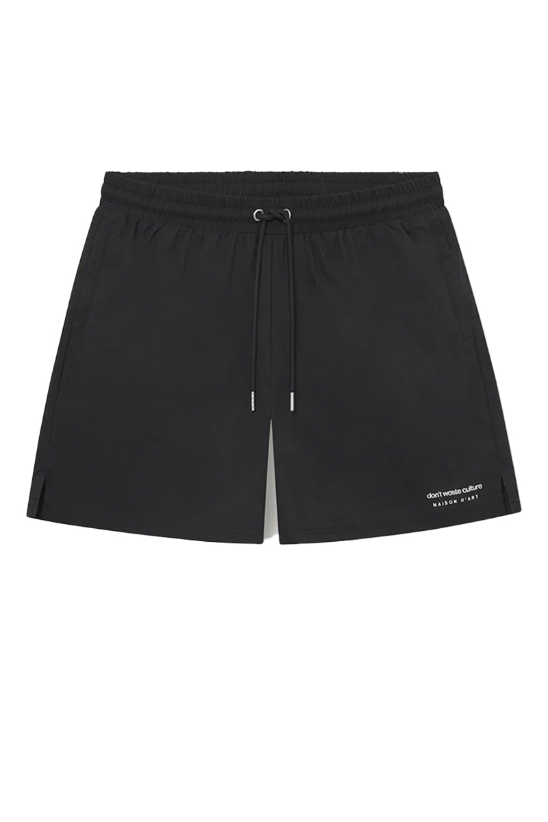 Korte broek met een relaxte pasvorm. Elastische tailleband met trekkoord voor verstelbare draagcomfort. Twee zijzakken en een achterzak voor extra functionaliteit. Subtiel logo onderaan de linker pijp. Verkrijgbaar in de kleur: zwart.