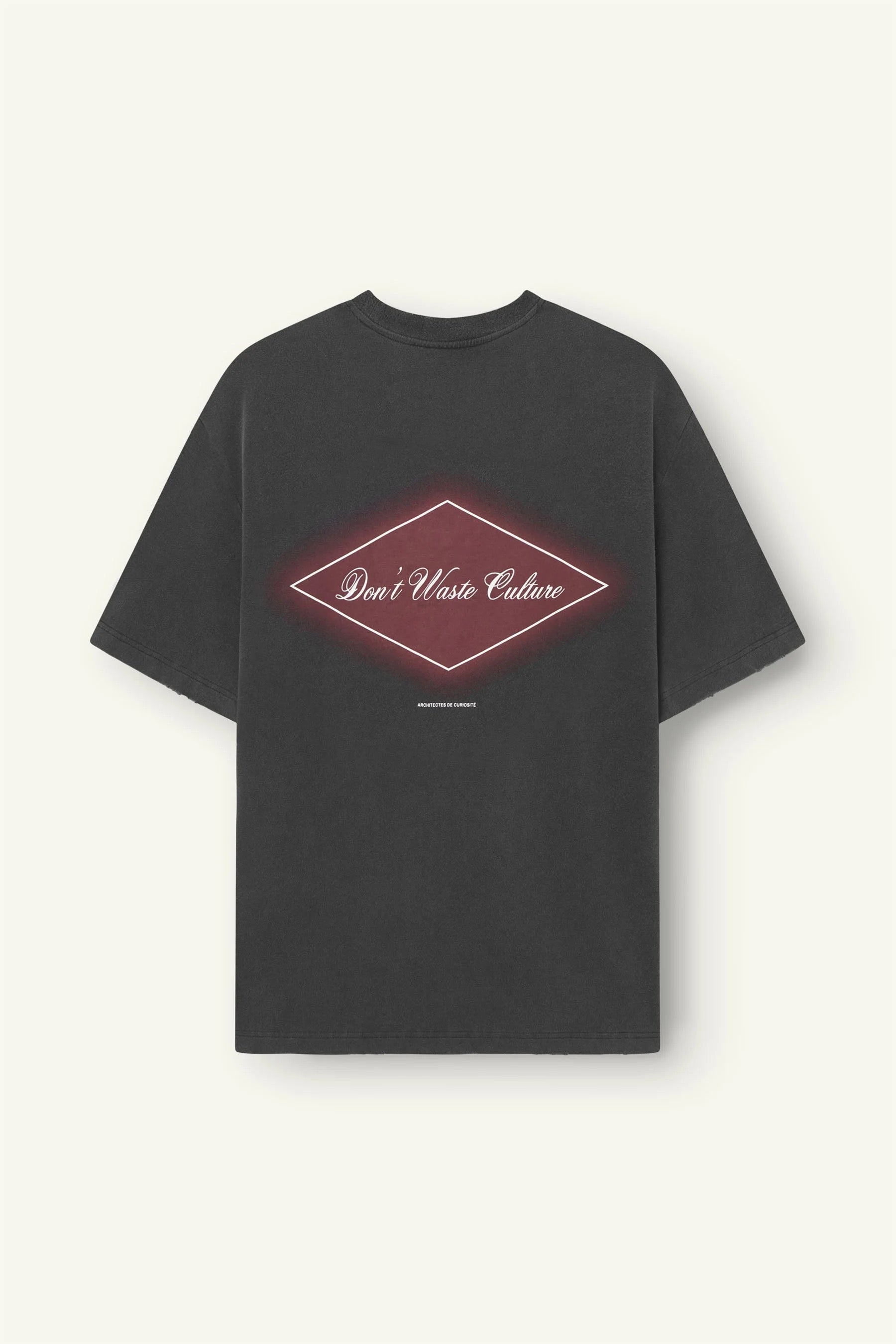 T-shirt met een ruime pasvorm voor optimaal comfort. Het ontwerp omvat een ronde halslijn en korte mouwen. Achterop voorzien van een opvallende opdruk met het "Don't Waste Culture" logo, gezet binnen een geometrisch kader. Dit shirt heeft een klassieke uitstraling met een eigentijdse twist.