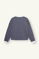 De DONT WASTE CULTURE SWEATER ALETHEA D-BLAUW (70777) is een onderscheidend UNISEX item van DONT WASTE CULTURE. Het model combineert een sweater met de kenmerken van een poloshirt: een donkerblauw, geweven patroon en een witte contrastkraag. De preppy college-look wordt gecreëerd door twee goudbruine, geborduurde emblemen op de borst.