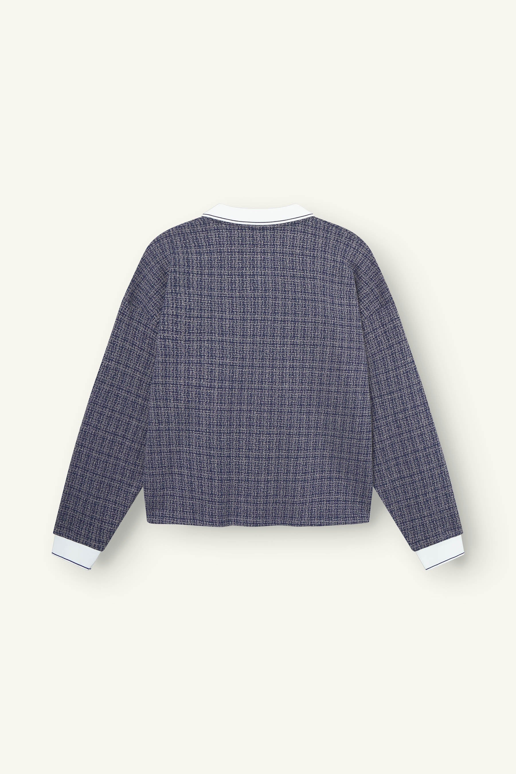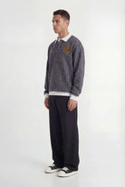 Het UNISEX model heeft een Relaxed Fit met verlaagde schoudernaden voor een ruimvallende pasvorm. De polo-stijl is voorzien van een korte knoopsluiting en is afgewerkt met brede, gestreepte ribboorden. Was de sweater binnenstebuiten, op maximaal 30°C (handwas/fijnwas), en vermijd de droger om krimp en schade aan de details te voorkomen.