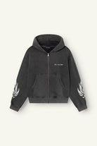 De DONT WASTE CULTURE SWEATER WESANDRA ZIP HOODIE D-GRIJS is een essentieel kledingstuk voor Heren, aangeboden door Dont Waste Culture. Deze zip hoodie is uitgevoerd in een diepgrijze kleur en voorzien van een speciale afwerking die zorgt voor een verweerde, vintage look. Kenmerkend voor het ontwerp zijn de contrasterende witte, bladvormige vlammenprints op de buitenzijden van beide mouwen.