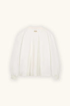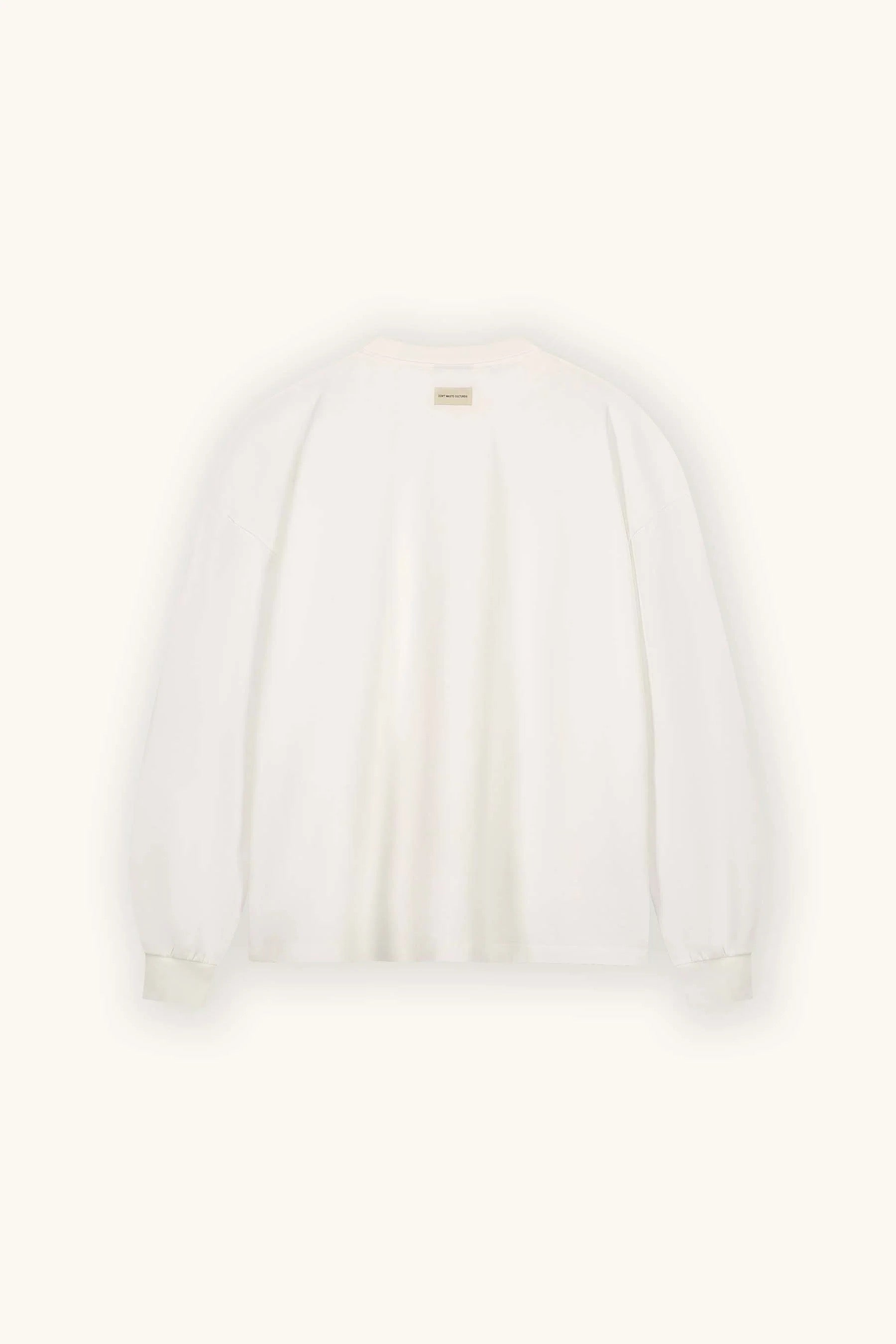 Het model van dit shirt heeft een relaxte en ruimvallende pasvorm (oversized fit). Het is voorzien van een klassieke ronde hals en een rechte zoom. De lange mouwen vallen wijd en zijn afgewerkt met strakke boorden. De afwerking is compleet met discrete, geweven merkdetails in de nek en aan de zijnaad.