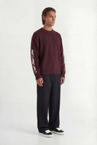 De DONT WASTE CULTURE TRUI IONORA BORDEAUX (SKU 71701) is een opvallend unisex item van het merk DONT WASTE CULTURE. Deze dieprode, grof gebreide sweater met ronde hals combineert een klassieke basis met een streetstyle uitstraling. De merknaam ‘Don’t Waste Culture’ is in contrasterend witte, script-achtige belettering over beide mouwen aangebracht. (47 woorden)