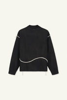 De DONT WASTE CULTURE TRUI TATU ZWART is een kenmerkend UNISEX kledingstuk van het merk DONT WASTE CULTURE. Dit zwarte, gebreide model kenmerkt zich door een minimalistisch en expressief ontwerp. Centraal staat een contrasterende, golvende lijn in een lichte tint die diagonaal over de voorkant van het borstpaneel loopt. De opstaande ronde hals draagt bij aan de modieuze en eigentijdse uitstraling.