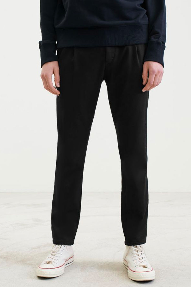 Heren Task-2 chino, in kleur zwart, van het merk Drykorn. Chino heeft een regular-fit met een tapered leg en mid waist. Chino is gemaakt van milieuvriendelijk modal: 63% katoen 31% modal 5% polyester 1% elastaan met een gewassen jersey look. Met de verkoop van de chino steun je de duurzamere katoenteelt Better Cotton. Combineer voor een compleet outfit met de Ceren overshirt voor een casual chique look!