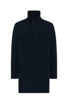 Halflange jas met rechte pasvorm. Voorzien van een opstaande kraag en verborgen ritssluiting met drukknoopsluiting. Subtiel merklogo op de linkermouw. Dubbele zijzakken, onzichtbaar weggewerkt in naaddetails. Achterzijde met verticale naad voor een gestroomlijnd silhouet.