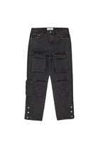 Relaxed cargo jeans met meerdere praktische zakken. Loose fit voor optimaal comfort. Twee grote cargozakken aan de voorkant. Twee achterzakken met subtiel geborduurd merklogo. Drukknopen aan de zijkanten voor extra stijlaccent. Kleur: zwart.