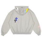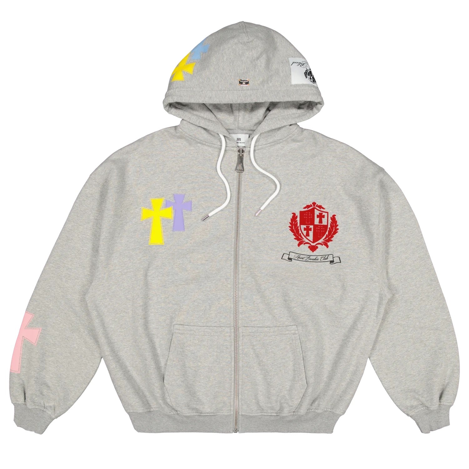 Losvallend vest met ritssluiting en capuchon. Voorzien van meerkleurige kruisapplicaties en een opvallend geborduurd logo op de borst. Handige kangoeroezak aan de voorzijde. Ribgebreide afwerking bij de manchetten en zoom voor een stevige pasvorm.