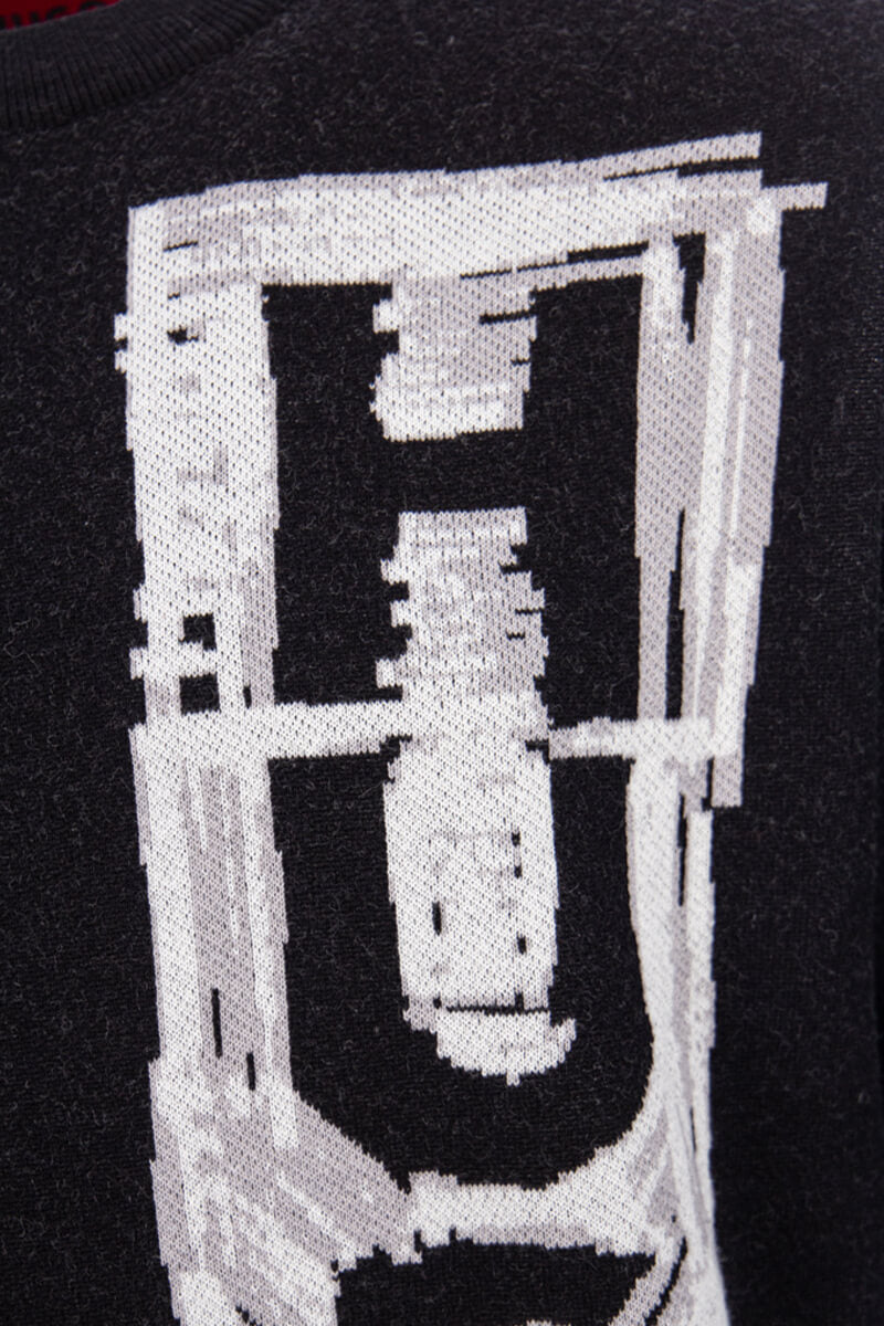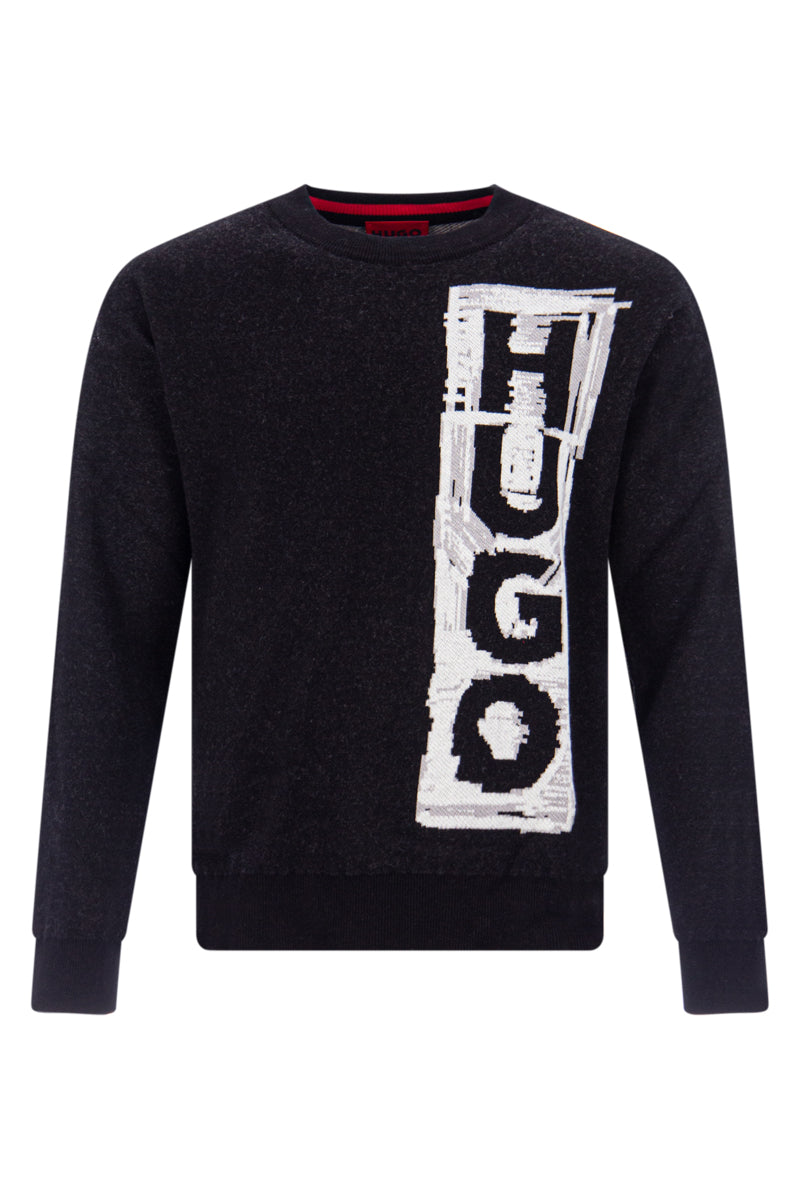 Heren Hugo Boss sweater, Sohugoh 50492814, in de kleur 001 Black/ zwart. Deze 'knit' sweater van Hugo Boss is voorzien van een regular-fit pasvorm. Verder is de trui afgewerkt met een jacquard 'Hugo' beeld. Tot slot is de sweater voorzien van geribde manchetten.