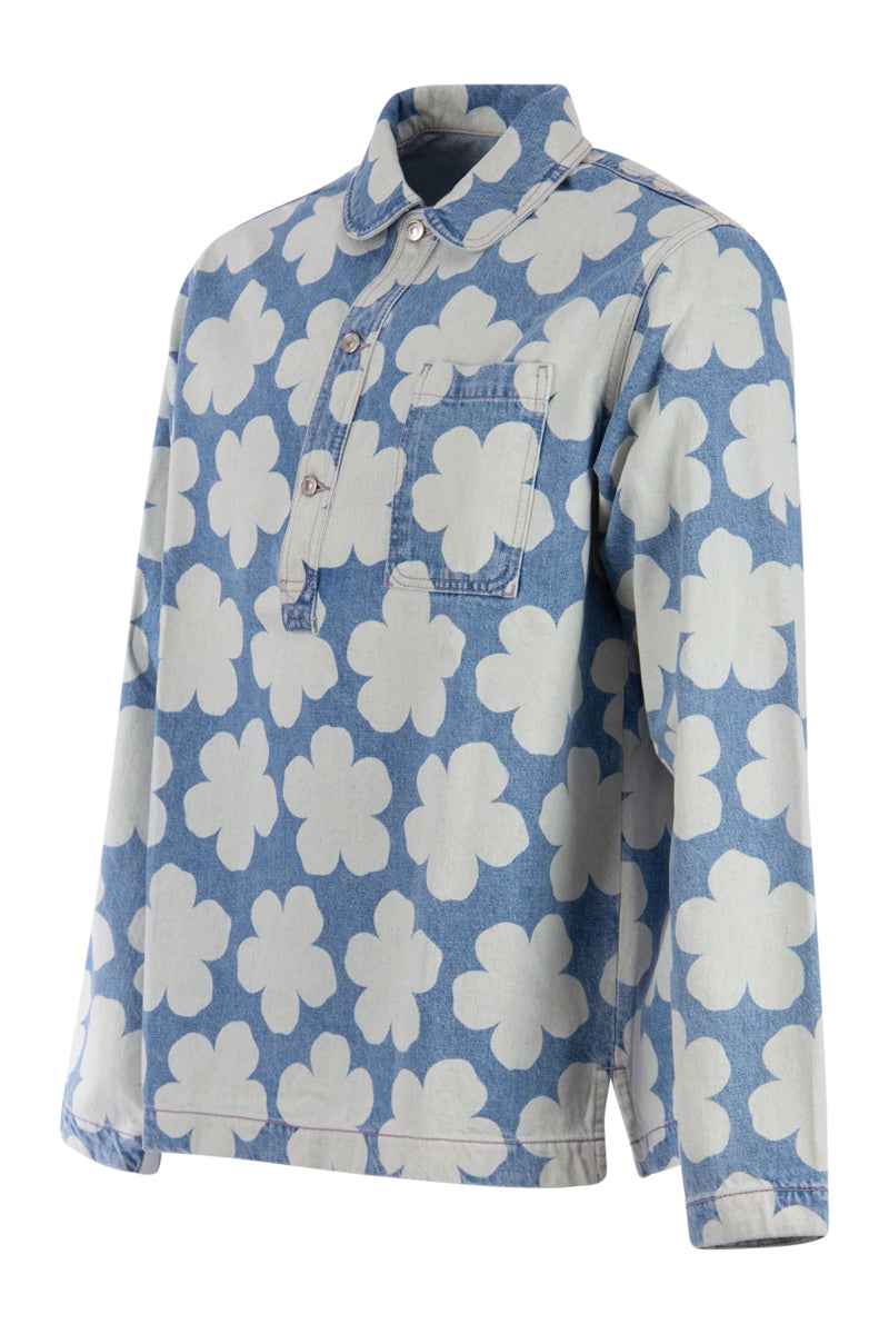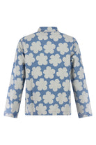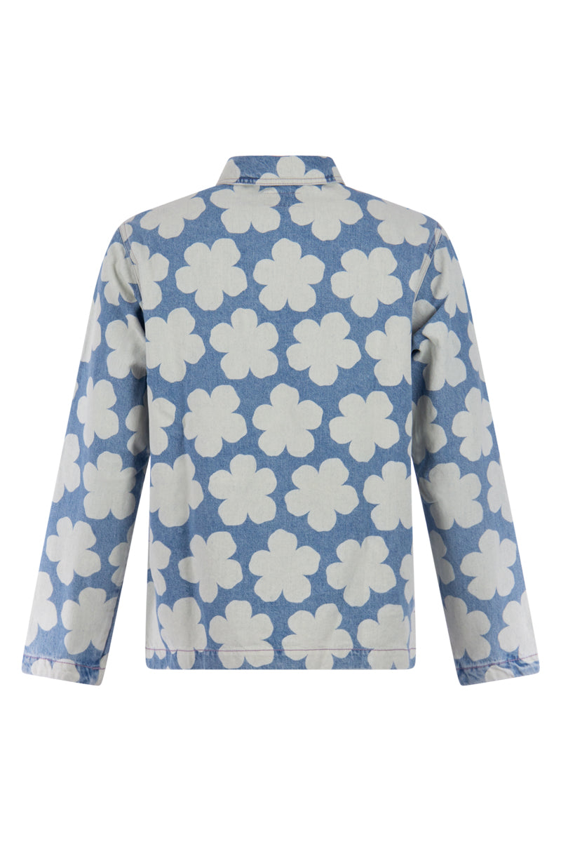 Dit demin overshirt (FC65DC5039GP) is van het merk Kenzo. Het overshirt is voorzien van een witte bloemenprint (65 hana dots). Op de borst zit een zak en er zitten drie knopen op de voorzijde.