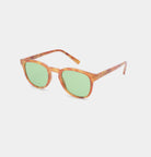 Ronde zonnebril met strakke lijnen, geschikt voor dagelijks gebruik. Ontworpen door A. Kjaerbede. Kleur: Geel translucent montuur met heldergroene lenzen. Het subtiele A. Kjaerbede logo is discreet geplaatst op de pootjes. Het montuur biedt een balans tussen stijl en functionaliteit. De glazen bieden UV-bescherming.