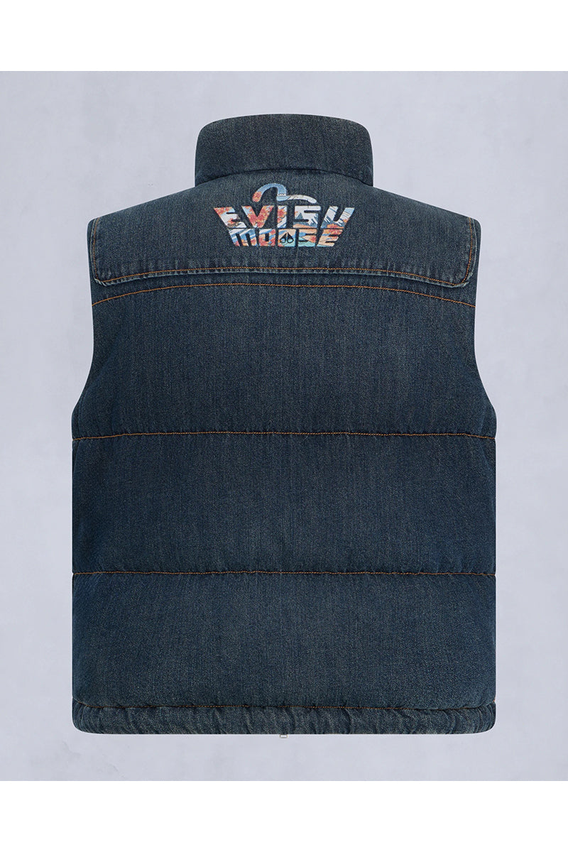 MOOSE KNUCKLES BODYWARMER EVISU X MOOSE DENIM DOWN VEST BLAUW