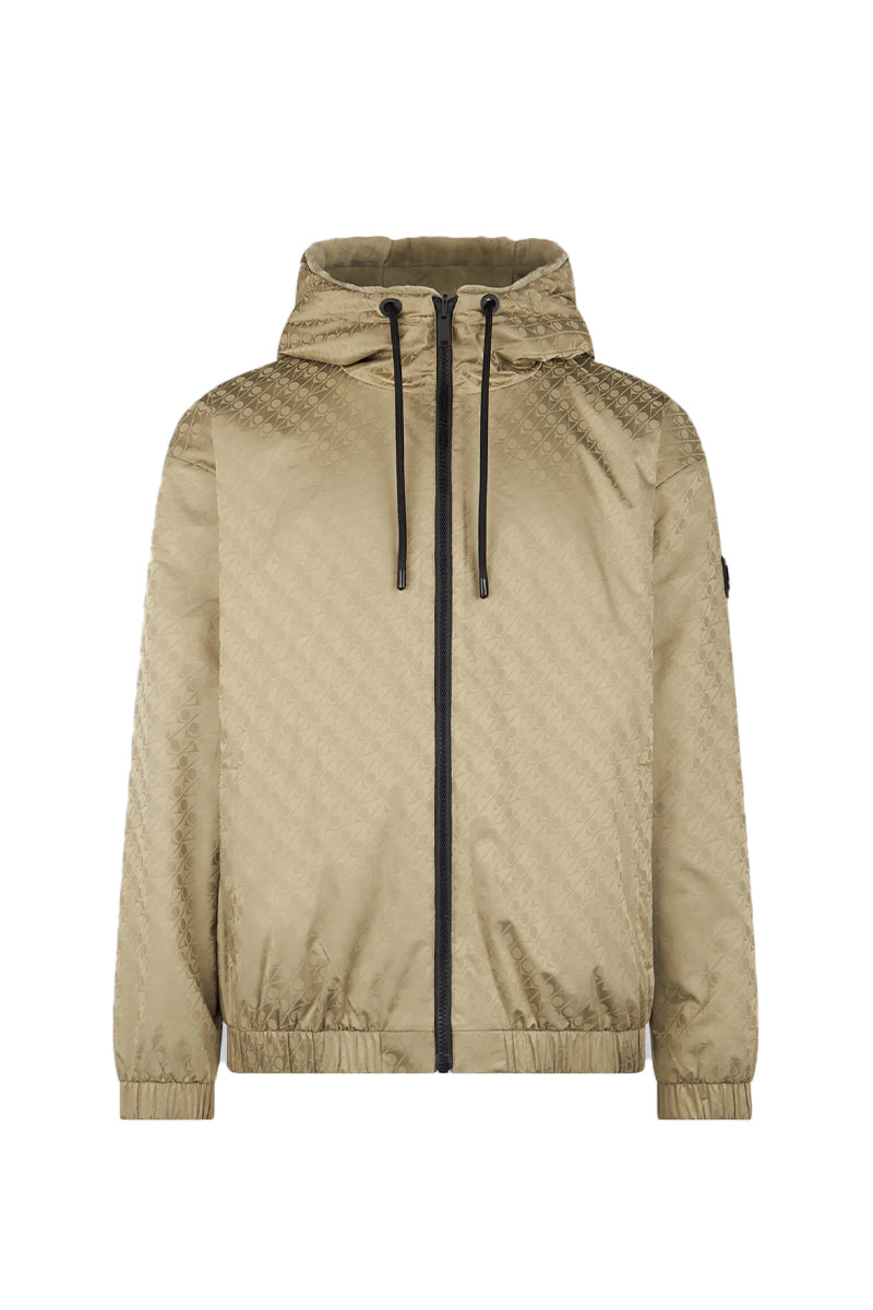 Stijlvolle jas met een moderne uitstraling. Voorzien van een capuchon met trekkoorden voor aanpasbare bescherming. De jas heeft een subtiele all-over print die visuele diepte toevoegt zonder te overheersen. Elastische boorden aan mouwen en zoom zorgen voor een goede afsluiting. Er zijn zijzakken met rits voor het veilig opbergen van persoonlijke spullen. Het merklogo is discreet geplaatst op de linkerarm.