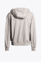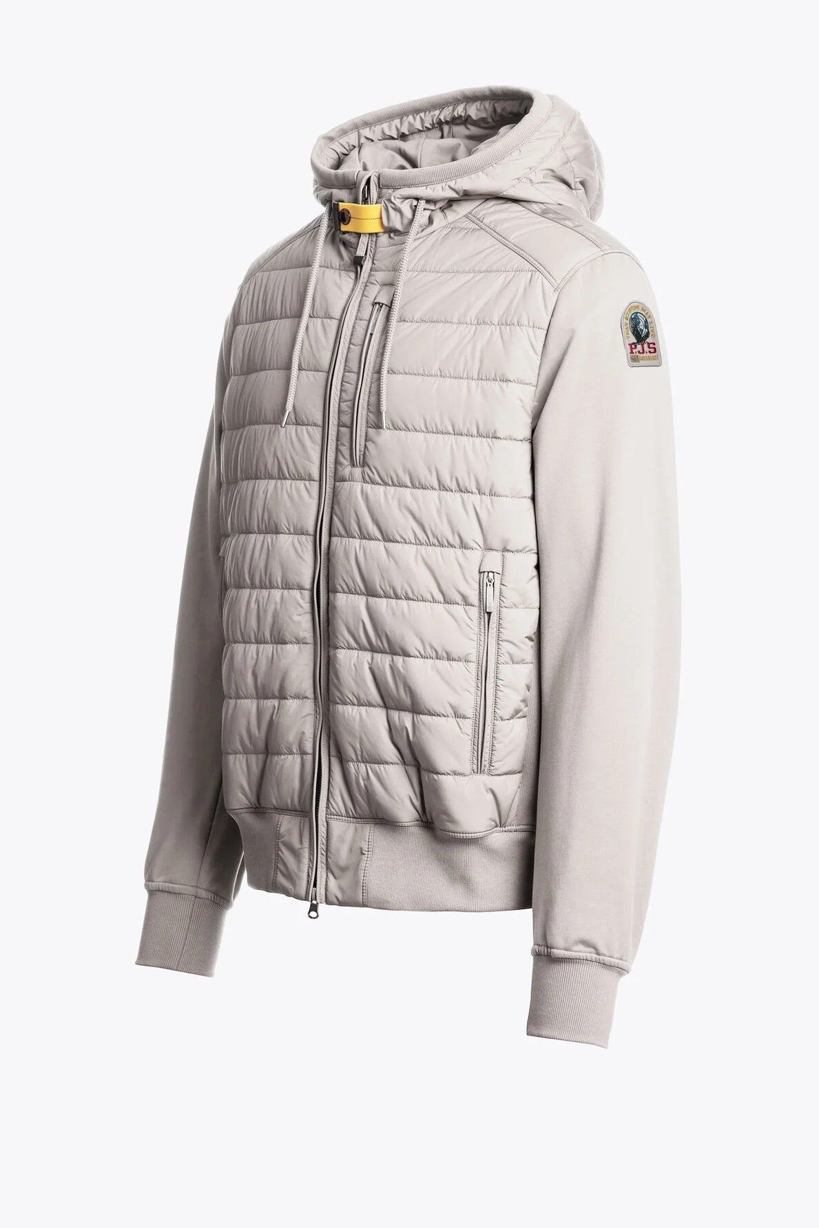 De Parajumpers Jas Ivor-M Beige van Parajumpers is een modern kledingstuk voor heren. Dit model heeft een hybride ontwerp waarbij een gewatteerde voorzijde en capuchon worden gecombineerd met mouwen en een achterpand van een andere stof. De beige kleur zorgt voor een tijdloze en zakelijke uitstraling die eenvoudig te combineren is met diverse outfits.