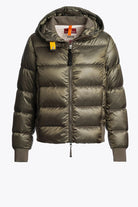 Getailleerde jas met een glanzende afwerking. Voorzien van een ritssluiting en een capuchon. Ribboorden aan de mouwen en zoom. Kenmerkende Parajumpers logo op de linkermouw. Twee steekzakken met ritssluiting. Functionele details zoals de gele kinband met drukknoop.