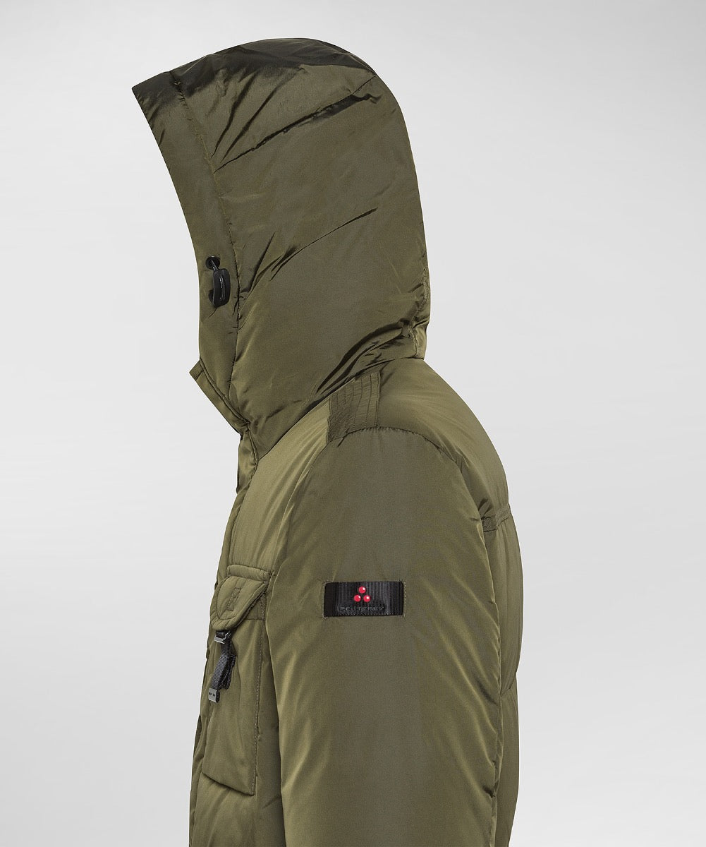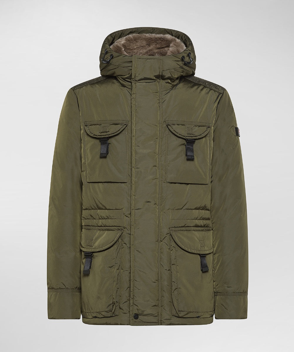 Peuterey Jas Aiptek Nbe Fur L-groen Veelzijdige jas met een modern design en functionele details. Voorzien van meerdere voorzakken met klittenbandsluiting. Hoogsluitende ritssluiting met drukknopen. Capuchon met verstelbaar trekkoord. Subtiel merklogo op linkerarm. Binnenvoering voor extra comfort.