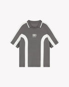 Sweater van Saint Blanc met een opvallend raglan ontwerp. Uitgevoerd in een donkere grijstint, voorzien van contrasterende witte strepen die de zijkanten en mouwen accentueren. De sweater heeft een casual, losse pasvorm. De v-halslijn en korte mouwen dragen bij aan de moderne uitstraling. Centraal op de voorzijde bevindt zich een subtiel logo van Saint Blanc. Deze sweater is geschikt om te combineren met diverse stijlen zoals jeans of casual chino’s.