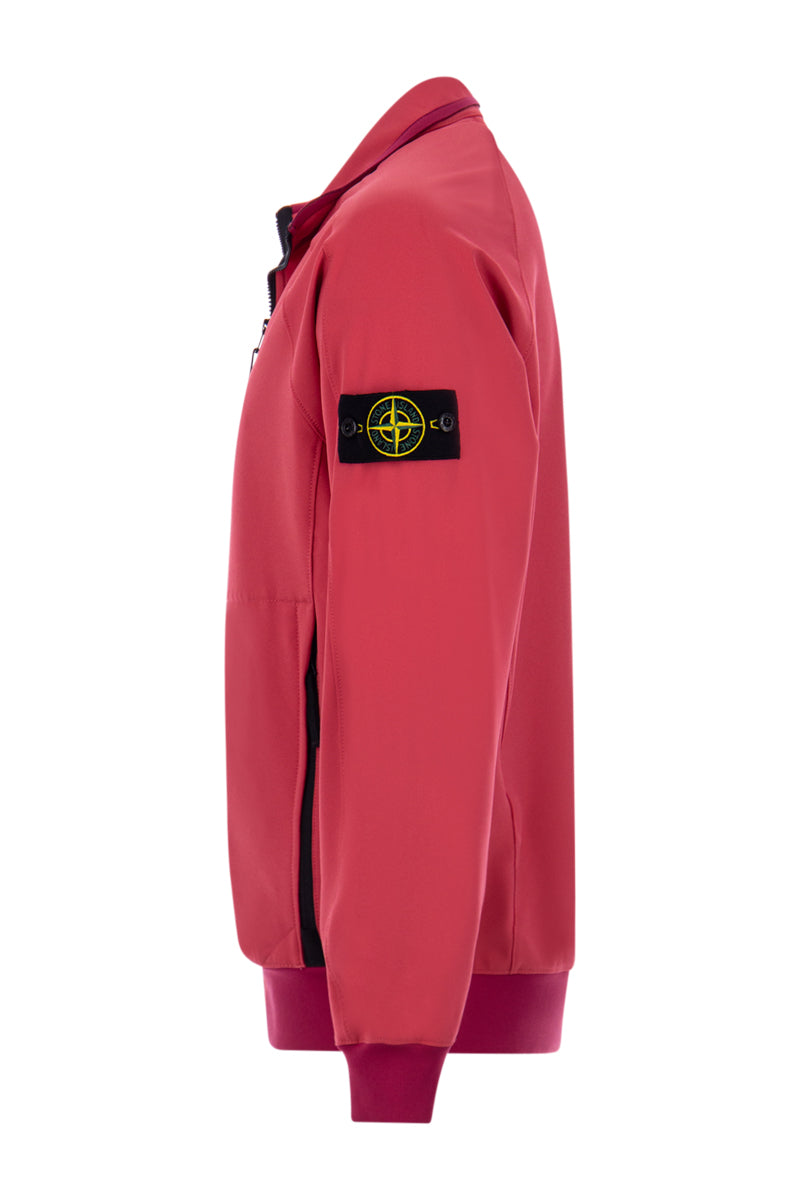 Heren softshell jas in de kleur V0087 Fuchsia, van het populaire merk Stone Island. De jas is voorzien van twee zakken met ritssluiting aan de voorzijde en dankzij de elastische manchetten krijgt de jas extra comfort voor elke weertype. De jas is afegewerkt met de iconische Stone Island patch op de linker mouw. Tot slot is de jas voorzien van sierlijke naden langs de schouders.