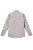 Grijs overhemd met lange mouwen en klassieke kraag. Voorzien van een borstzak met klep en knoopsluiting. Het iconische merklogo is aangebracht op de mouw voor herkenbaarheid. Het shirt is ontworpen met knopen bij de manchetten voor een verstelbare pasvorm. Moderne look die gemakkelijk te combineren is met diverse kledingstukken.