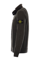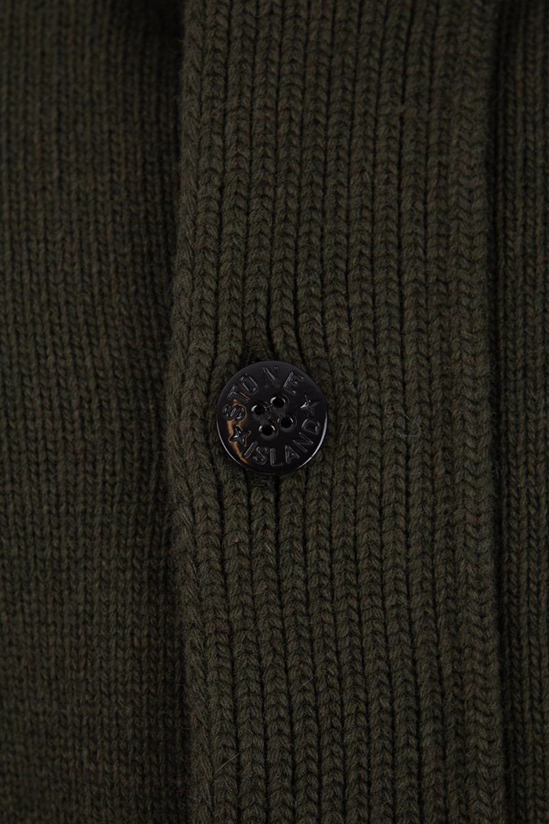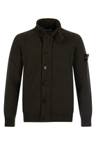 Heren Stone Island sweater, 7915547A3, in de kleur V0058 Olive. De sweatshirt is voorzien van een full-zip ritssluiting, overdekt met een knoopsluitting aan de voorzijde. Verder beschikt de trui over een opstaande kraag met knoopsluiting en de iconische afneembare Stone Island logopatch op de arm.