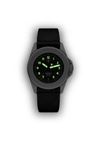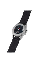 Horloge met 40mm kast en saffierglas. Waterdicht tot 30ATM. Duidelijke cijfers en wijzers, voorzien van verlichting voor optimale leesbaarheid in het donker. Het zwarte ontwerp straalt een moderne en strakke uitstraling uit. Met precisie vervaardigd, wat zorgt voor betrouwbare tijdsweergave. Zwarte band in resistente stof bevestigd aan stevige stalen kast.