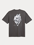 Regular fit T-shirt. D-grijs. Grafische print op rugzijde met AEDEN-logo. Ronde hals en korte mouwen. Bekijk foto's voor gedetailleerde weergave van de print en pasvorm.