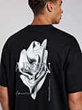 Zwart T-shirt van AEDEN met een opvallende zilveren print op de achterkant die een abstracte vorm toont, gecombineerd met het merkteken. Voorzien van korte mouwen en een ronde halslijn. De pasvorm is regulier en geschikt voor diverse stijlen. Gemaakt zonder zichtbare details over de randen heen, waardoor de focus op het design ligt. Dit T-shirt past goed bij jeans of shorts voor een veelzijdige uitstraling.