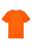 Rond hals T-shirt met korte mouwen. Heldere oranje kleur met opvallende print van beer met vlag. Logo in achterkant van de hals. Rechte zoom. Geschikt voor casual gelegenheden.